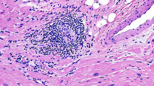 mild to moderate infiltration of interstitial spaces with mononuclear